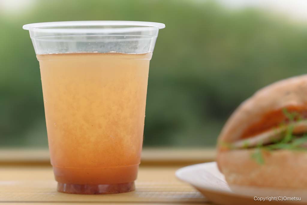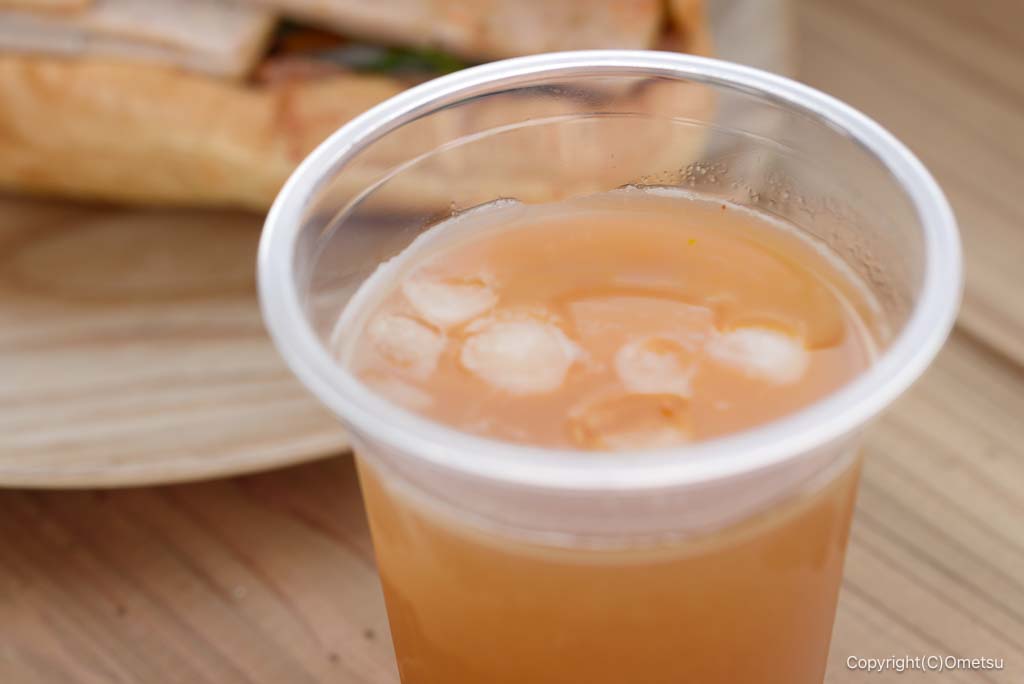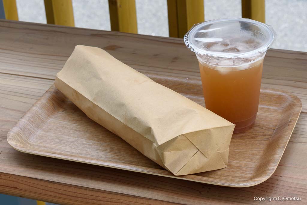 基本はテイクアウト店、バインミーは紙に包まれています。こぼれないよう、ドリンクはフィルムで天面がシールドされています。