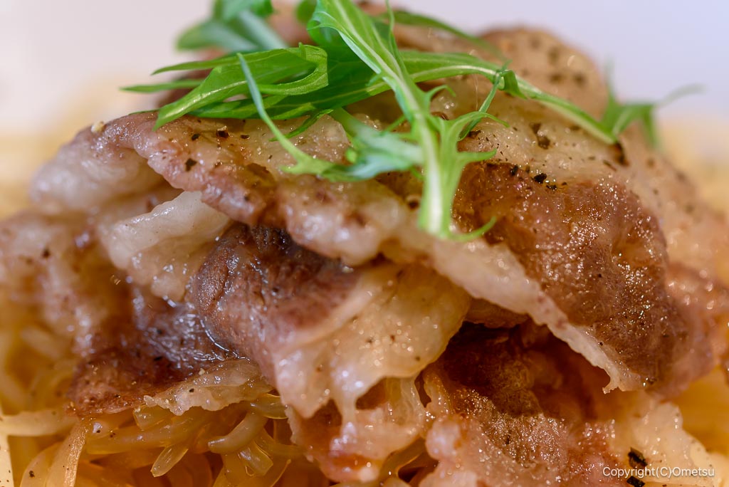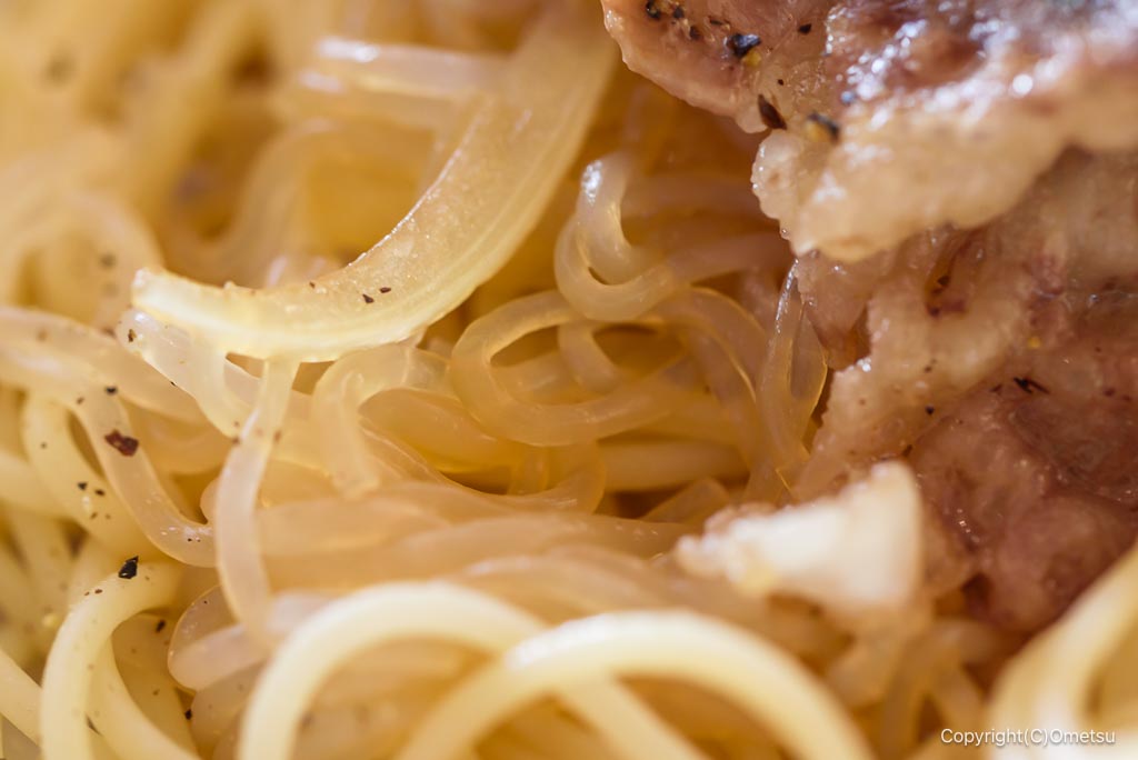 牛肉の下には、タマネギとしらたき!スパゲティーとは意外な組み合わせですが、中々合います!