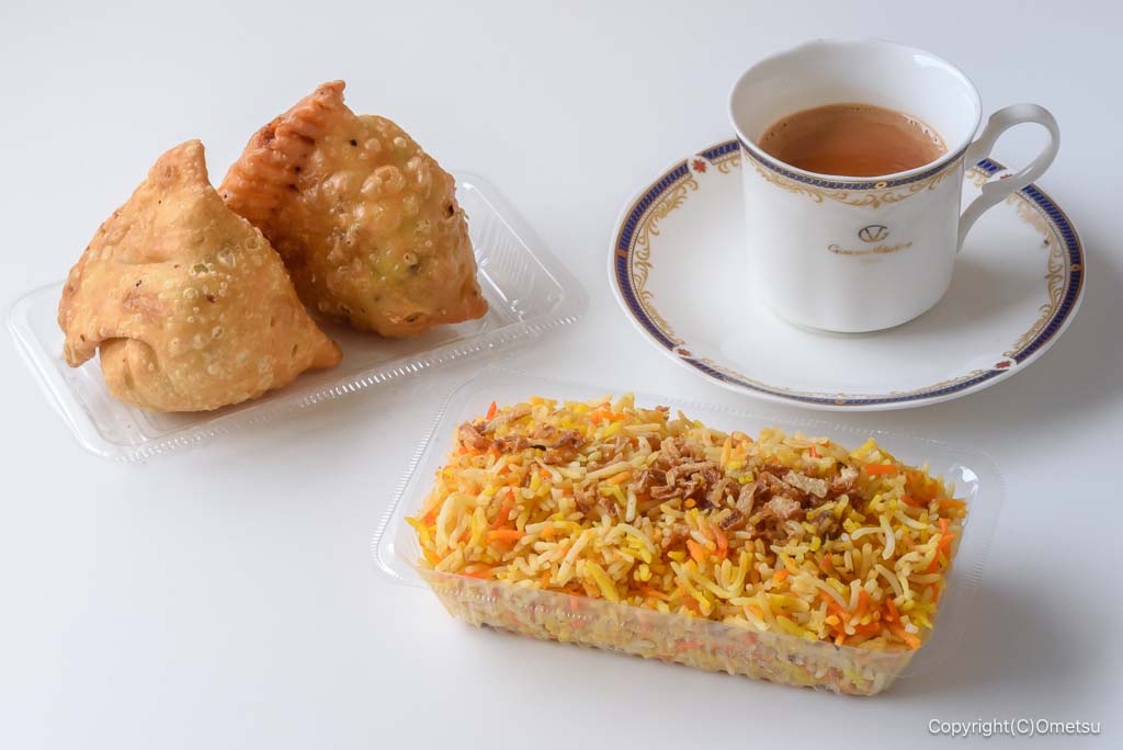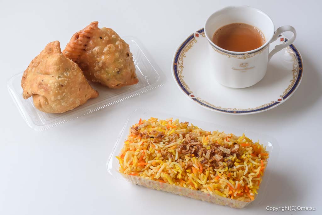 ビリヤニ、シンガラ、マサラチャイを注文。