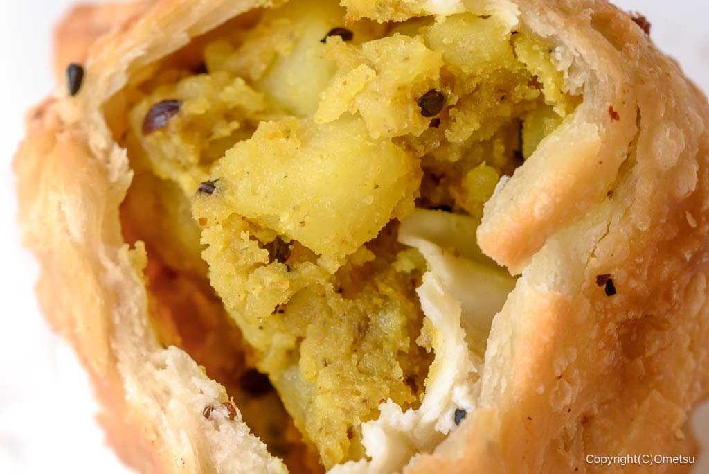 カリッとした、やや厚めの皮。香ばしく、独特の食感です。