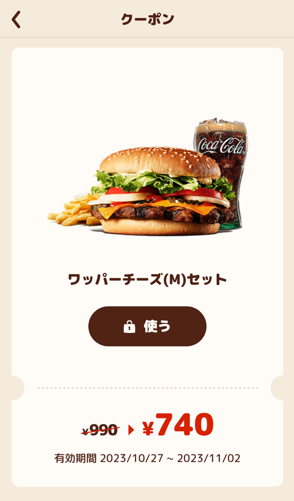 ワッパーチーズ(M)セットを注文。