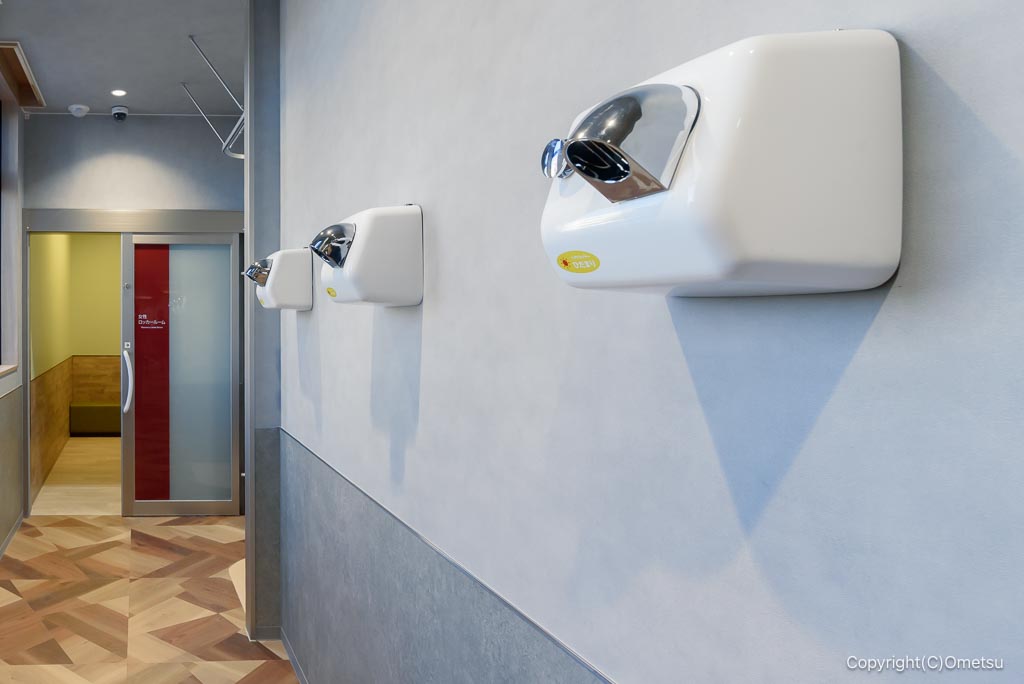壁に備えられたドライヤー。手で持たなくて良いから、運動で疲れた後でも楽々ですよ!