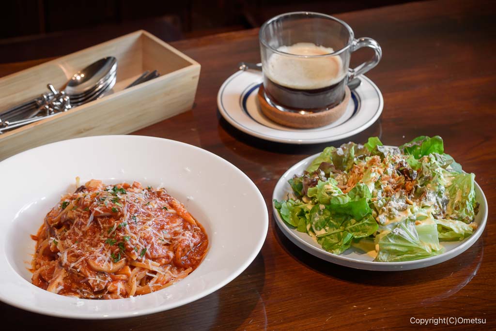 キノコ・ロッソのパスタをBセット(サラダ・ドリンク付き)で注文。