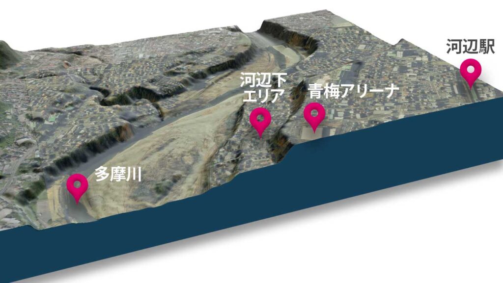 実証運行では、多摩川にほど近い、河辺下エリアを走ります。