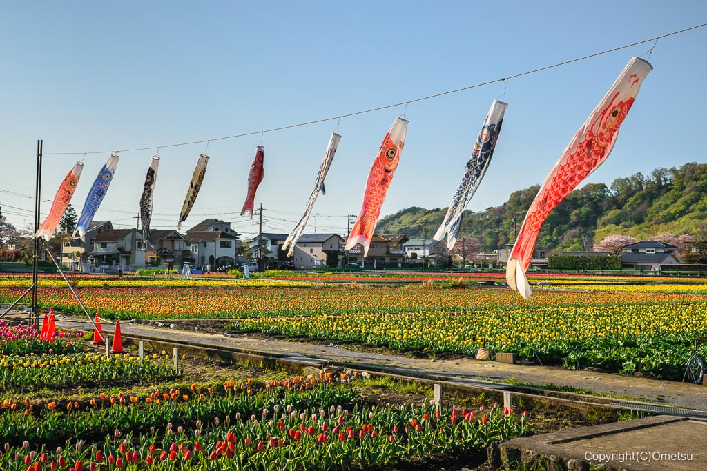 絶景チューリップ畑と、多摩川の桜並木
