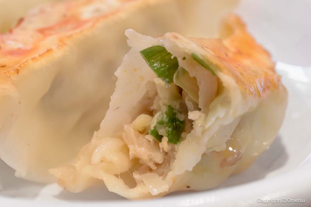 もっちりとした皮に、たっぷりの具です。野菜多めの餡は、ニンニク少なめのあっさり味。