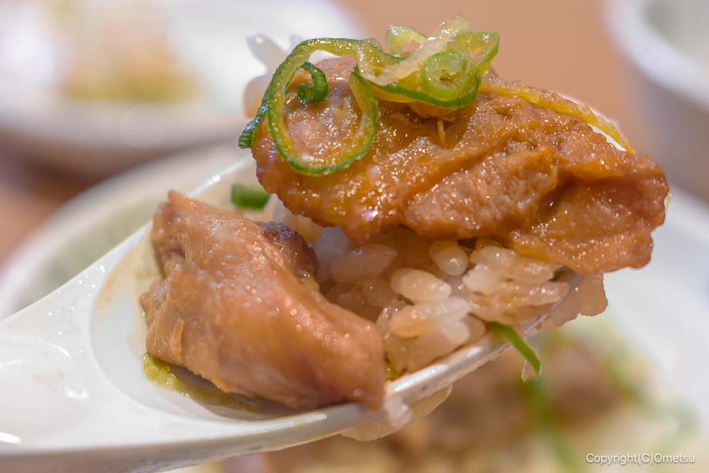 ご飯に焼き鳥、ネギをのせたシンプルな丼。タレが絶妙でご飯が進みます。
