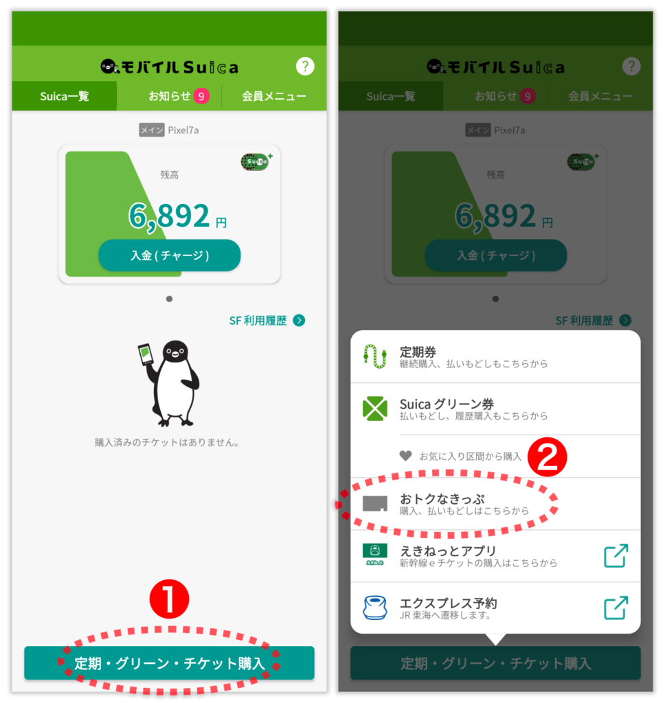 モバイルSuicaでの購入方法