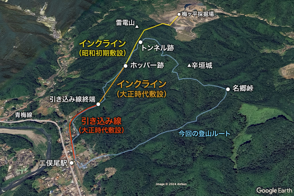 青梅丘陵を越え、山の反対側の浅野セメント・梅ヶ平採掘場(現奥多摩工業・青梅工場)まで敷設されました。
