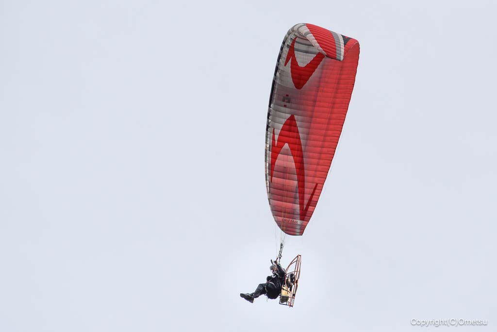 空を見上げると、パラモーターが舞っています。