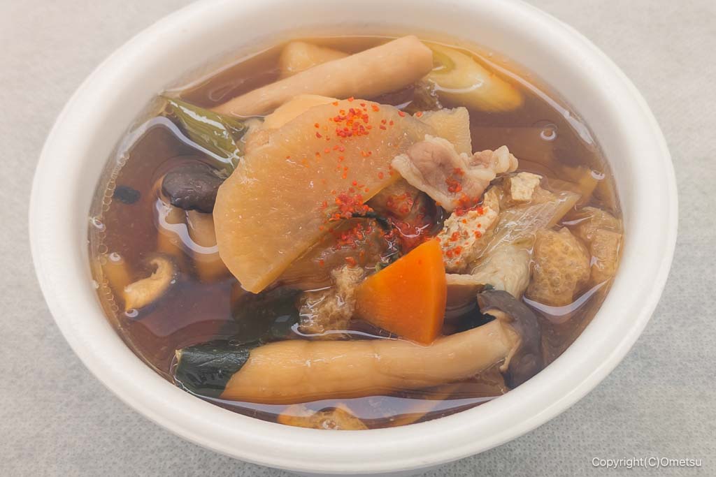 地元青梅「モバワン青梅友田店」の、具だくさんなけんちん汁。携帯電話の販売店なのに、不思議なくらい美味い!