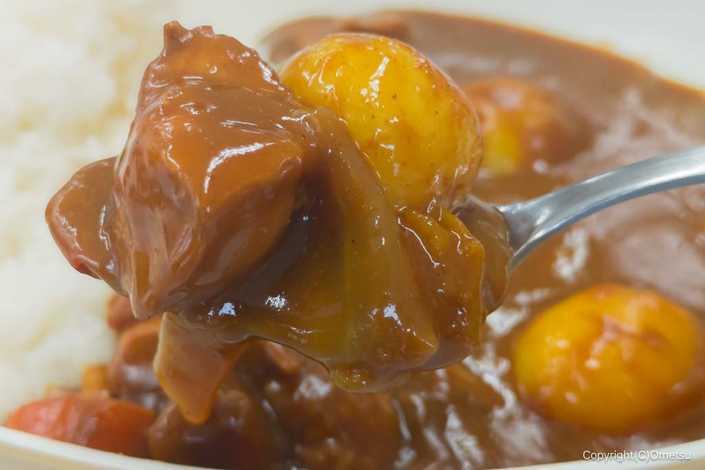 豚肉のほか、ニンジンなども入っています。ちょっぴりトマトの酸味を感じるテイストですね。