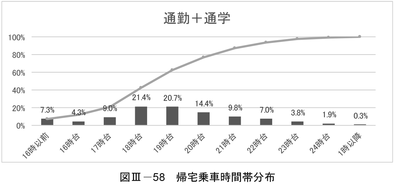 上のグラフは、首都圏の通勤・通学者の帰宅時での降車時間です。