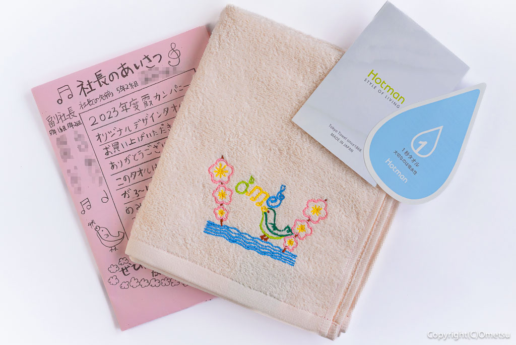 前年度は、児童がデザインして、市内の老舗タオルメーカー・ホットマンに発注。