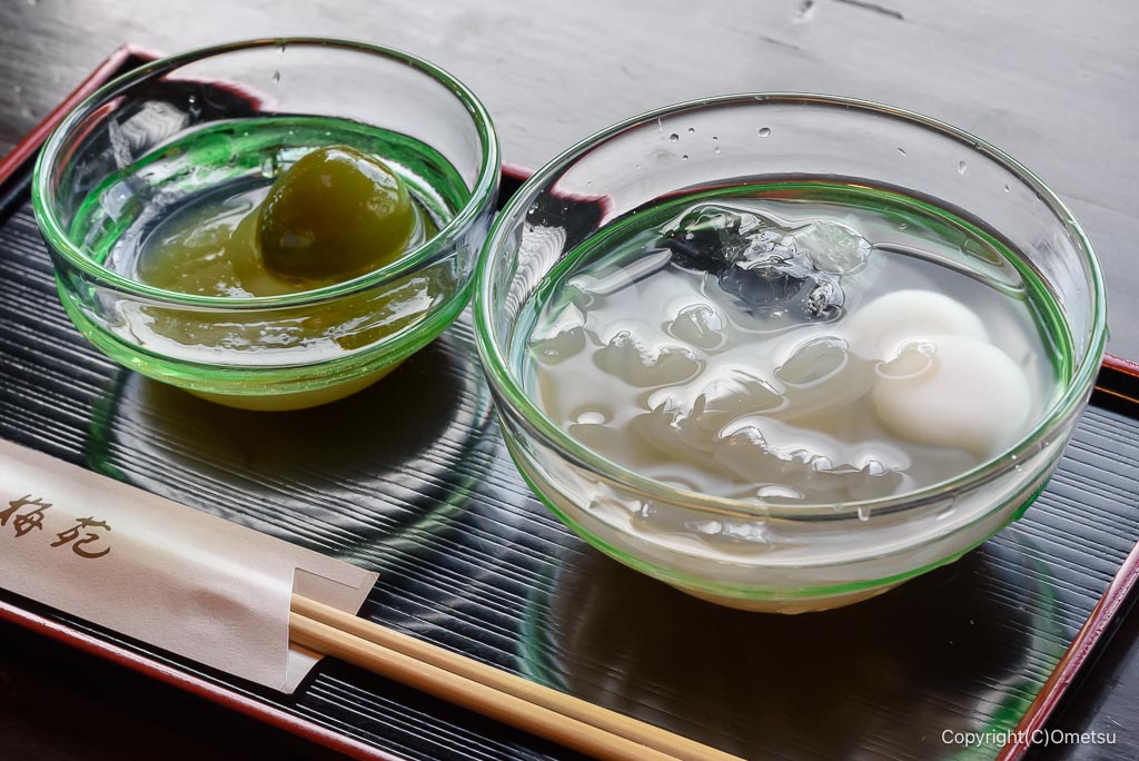 甘味処では葛切りもオススメ。青梅(あおうめ)と柚子の2種類があります。