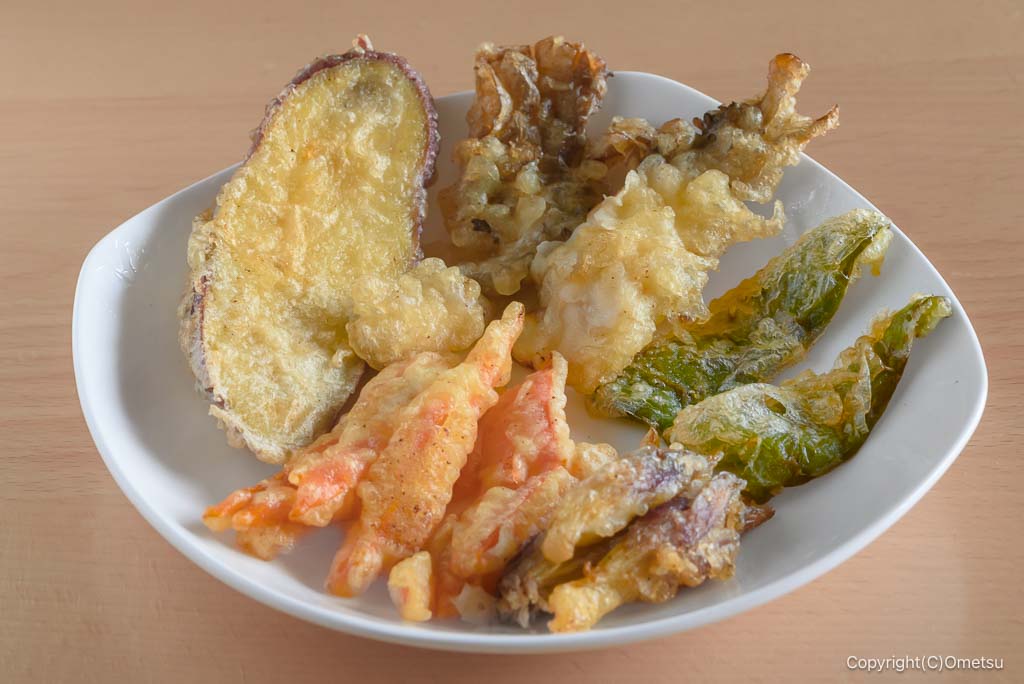 さつまいも、ミョウガ、マイタケ、ピーマン、ニンジン… 精進揚げがたっぷりです。