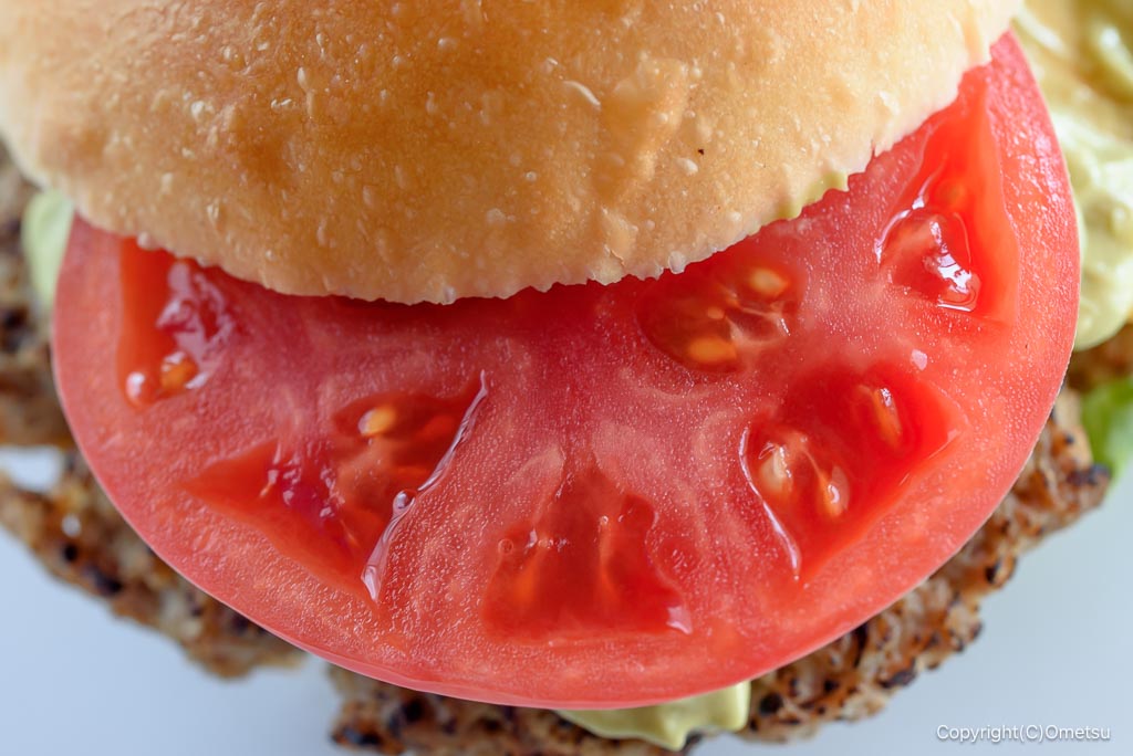 ハンバーグも巨大ですが、トマトもデカい!青果に強いスーパーらしく、瑞々しいトマトです。