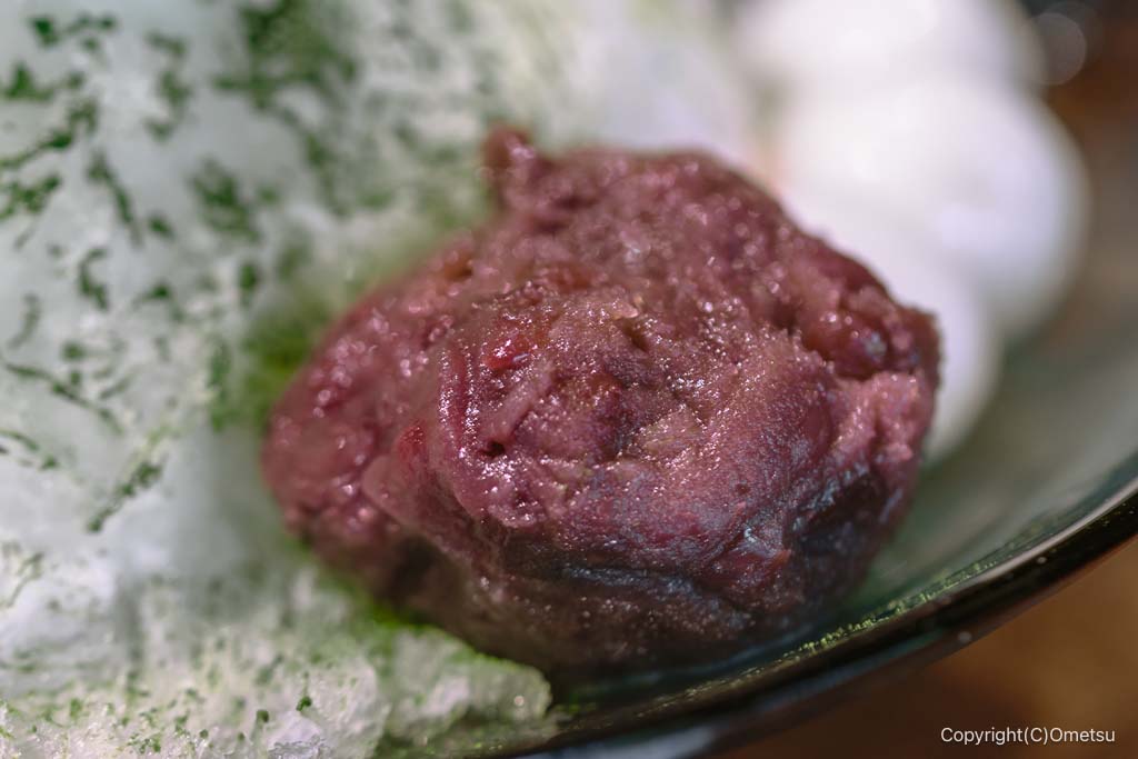氷の下には、葛粉とミルクの煉り菓子入り。食べ進むごとに美味しいかき氷ですよ!