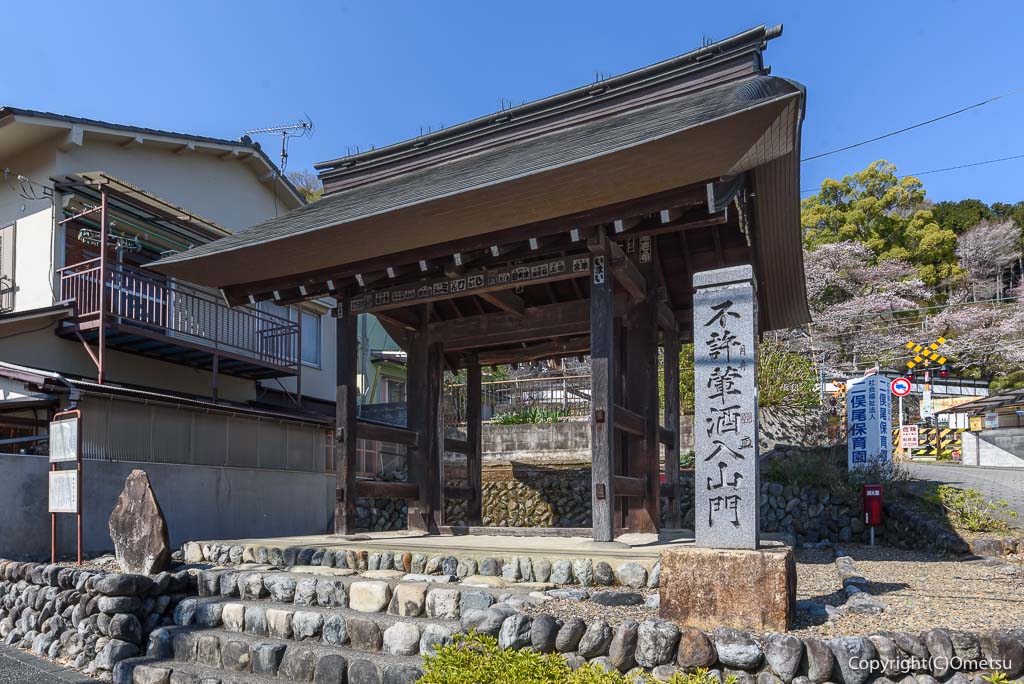 寺の前の踏切を渡り、青梅街道へ。街道沿いに総門があり、「不許葷酒入山門」の石碑もあります。酒を寺に持ち込むな、的な意味でしょうか。
