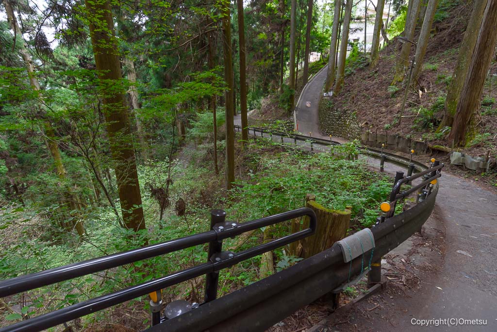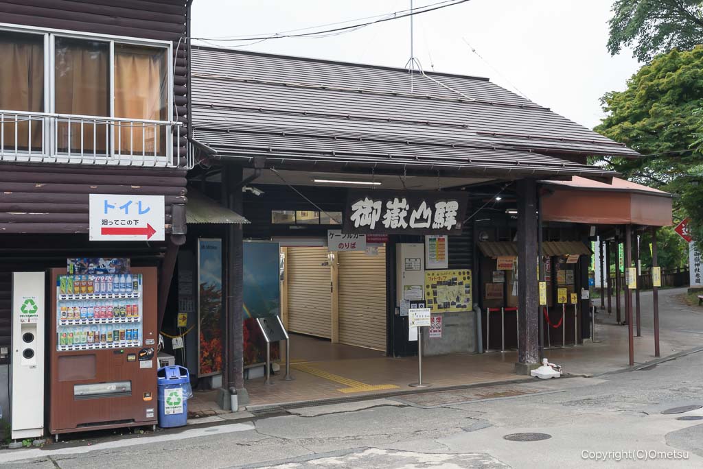 表参道下部は結構な急登で、標高の割に早く下れます。ケーブルー滝本駅に到着すれば、御嶽駅までのバス停もすぐ近くです。