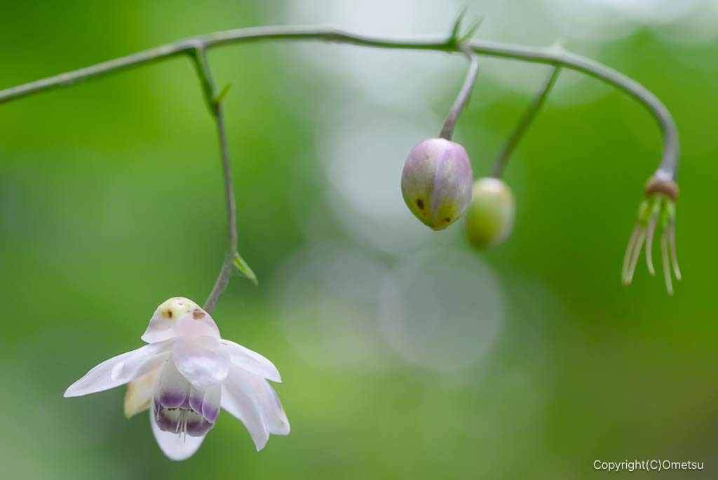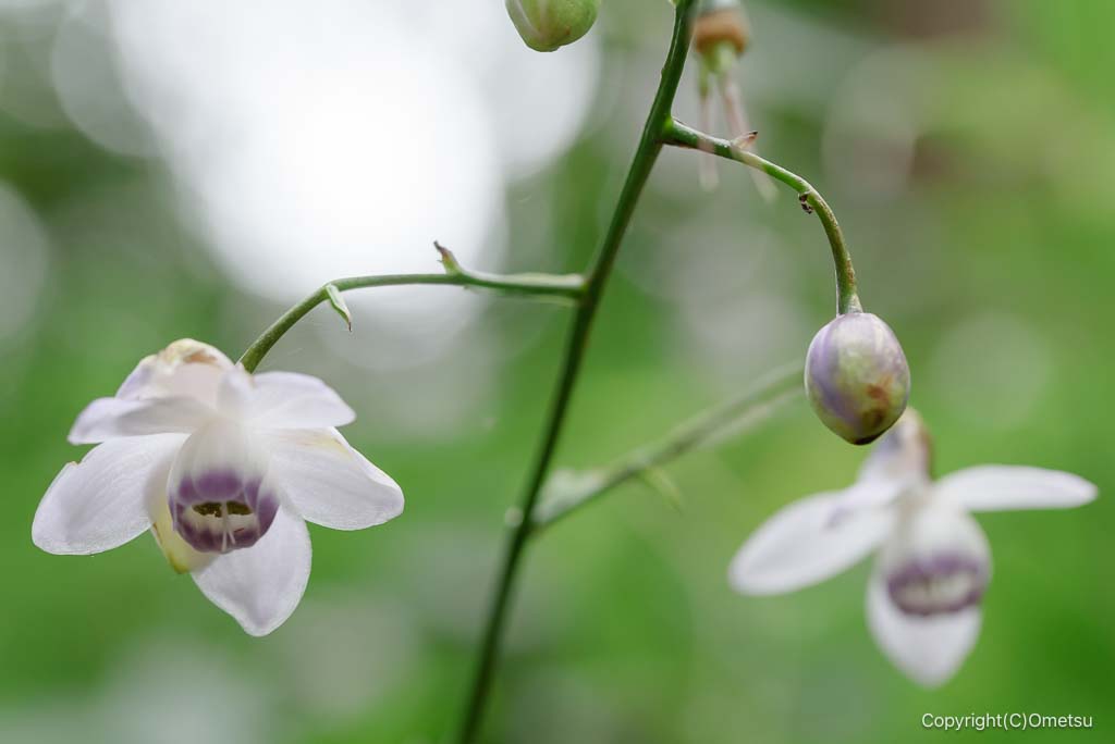 レンゲショウマは、ひとつの株に複数の花を付けます。一斉に花を咲かせず、少しずつ、時期をズラして開花します。