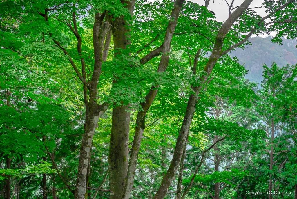 広葉樹林の山の斜面。曇っていれば、中々快適です。