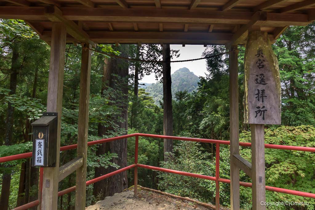 境内最奥の奥の院・遥拝所。直角三角形の奥の院が望まれます。