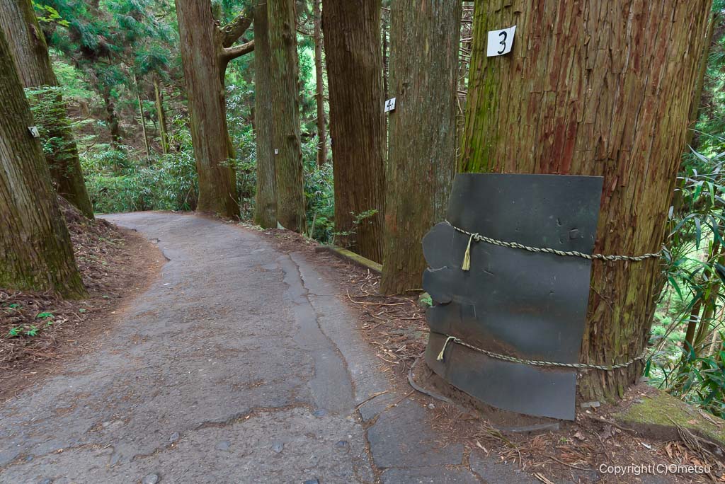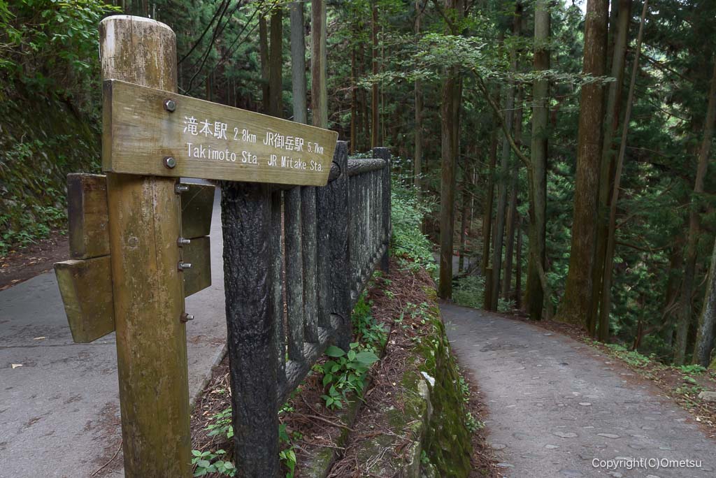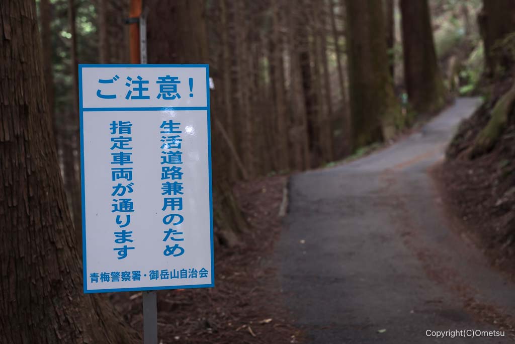 今回は、表参道を下ります。御岳ビジタセンターの少し先に、表参道への分岐があります。