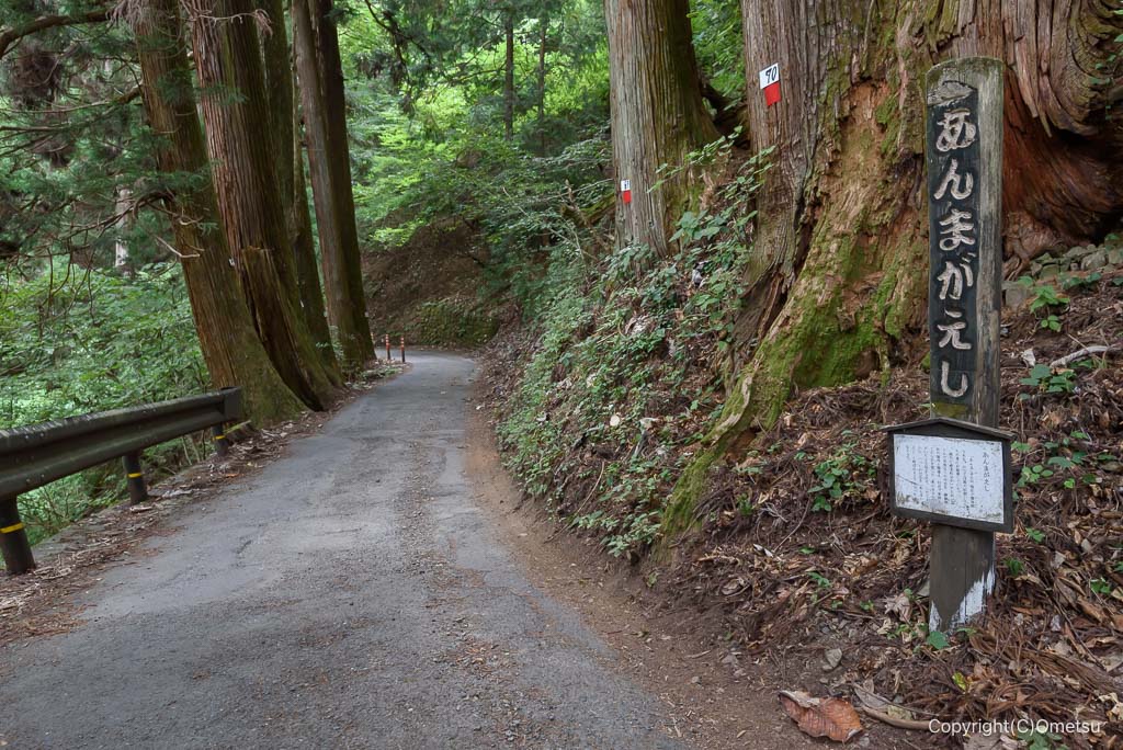 しばらく下ると「あんまがえし」。ここを御嶽神社と勘違いした「あんまさん」が居たと伝えられます。