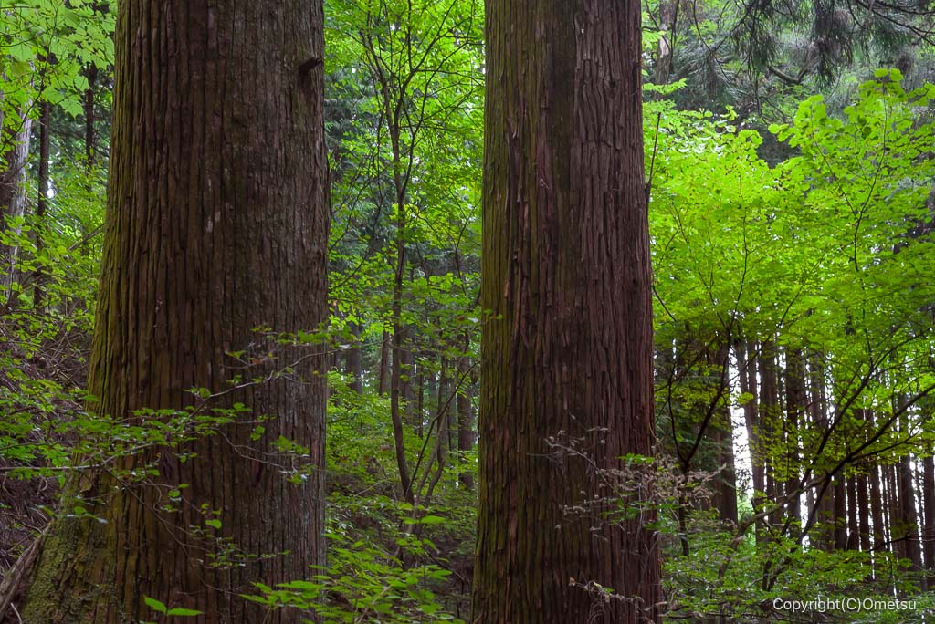 鬱蒼とした杉林をグングン下ります。
