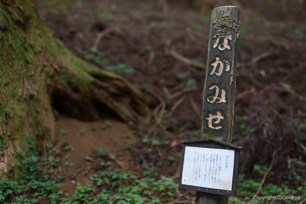 「なかみせ」に到着。山麓と山頂集落のほぼ中間地点で、茶屋があったとのことですが…