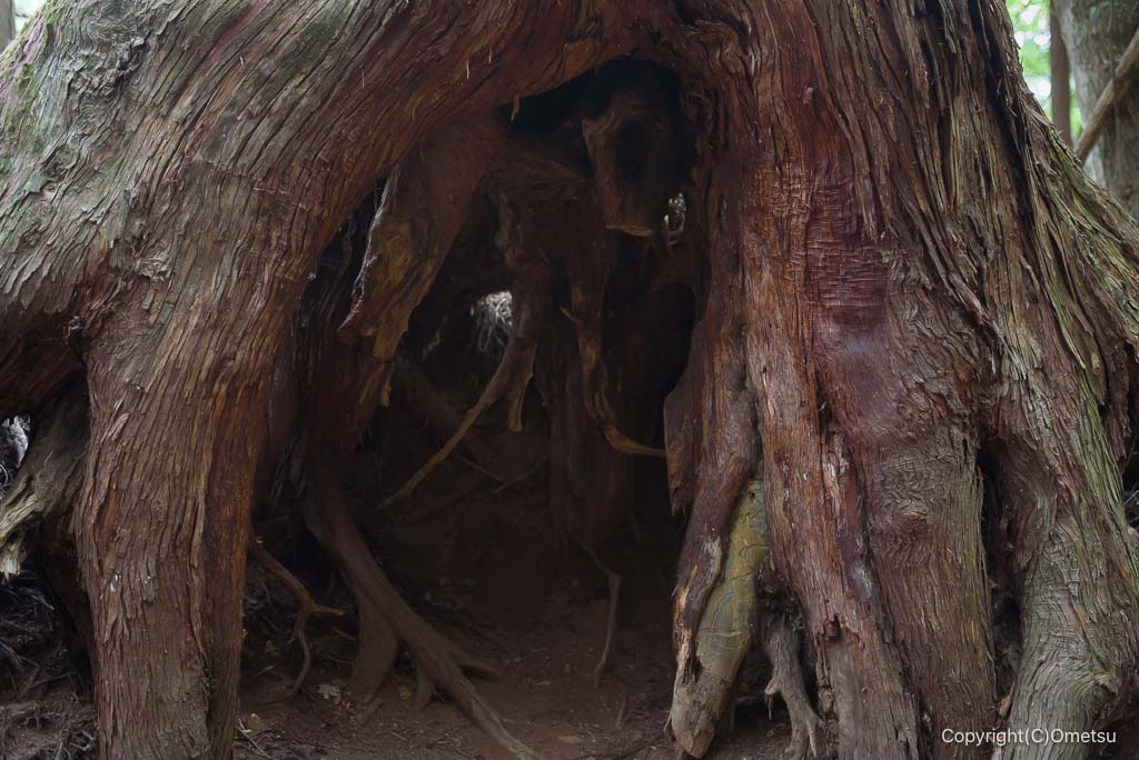 路傍の、木の根。雨宿り出来そうな広さですが、動物の巣もありそうな予感…