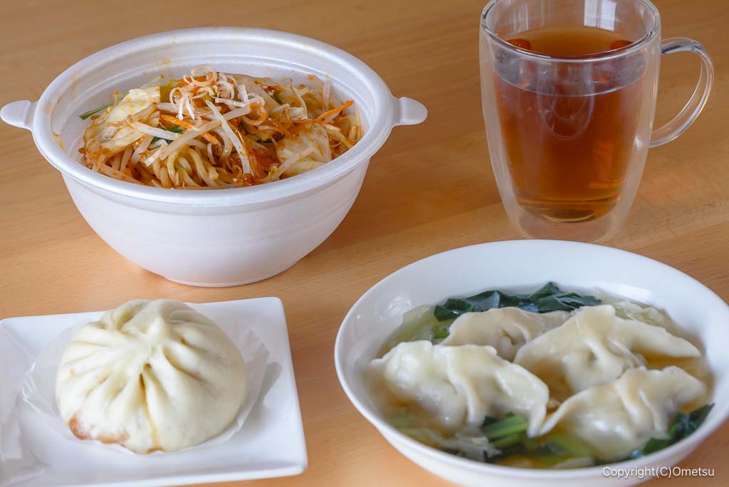 マーラー野菜和え麺、水餃子、肉まんをテイクアウト。