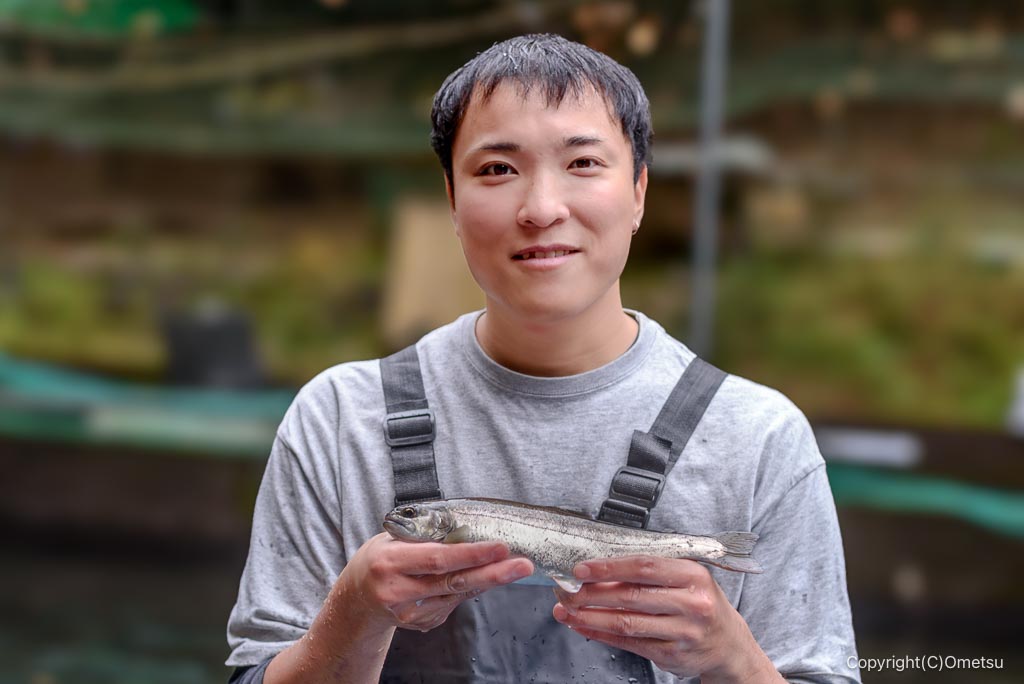 西方さんは奥多摩での養殖事業に従事。マス釣り場の養殖なども任され、地域に根ざした事業を展開しています。