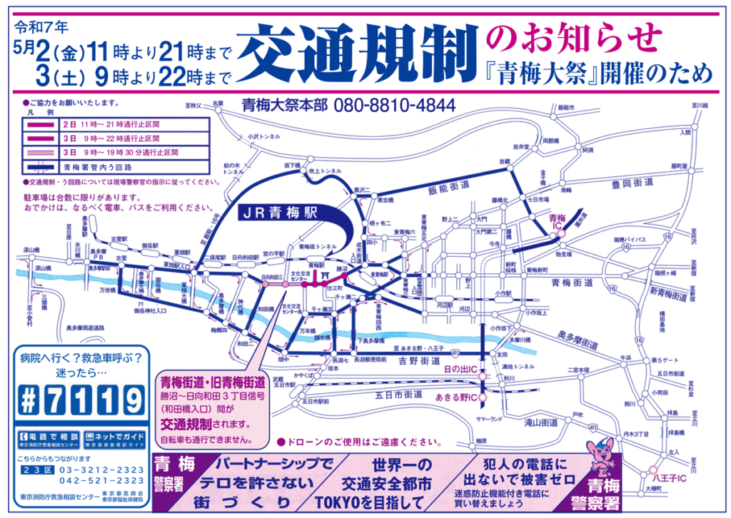 - 2025年5月2日・3日開催の青梅大祭開催の青梅大祭で、大幅な交通規制。
