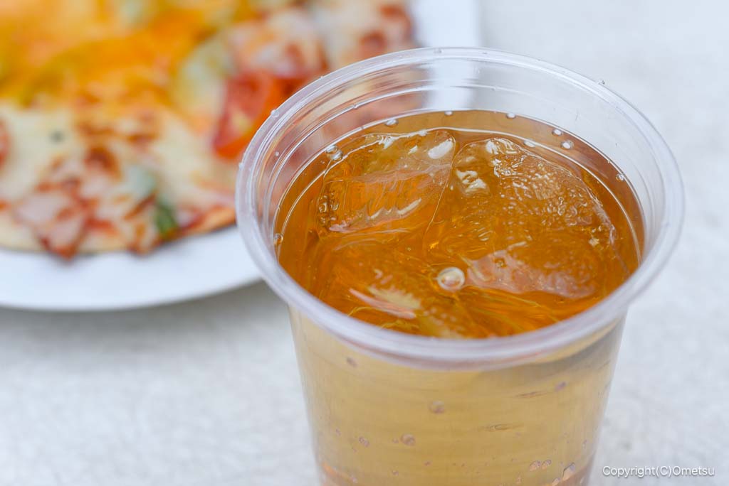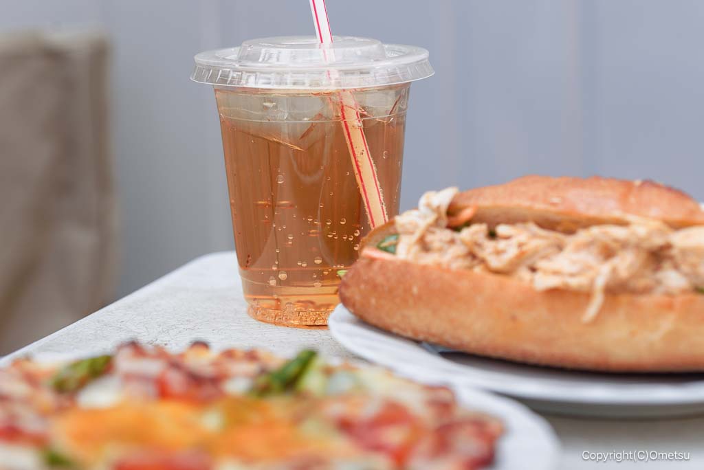 バケットサンドと、米粉のおやつピザを注文。ドリンクはジンジャーエールです。