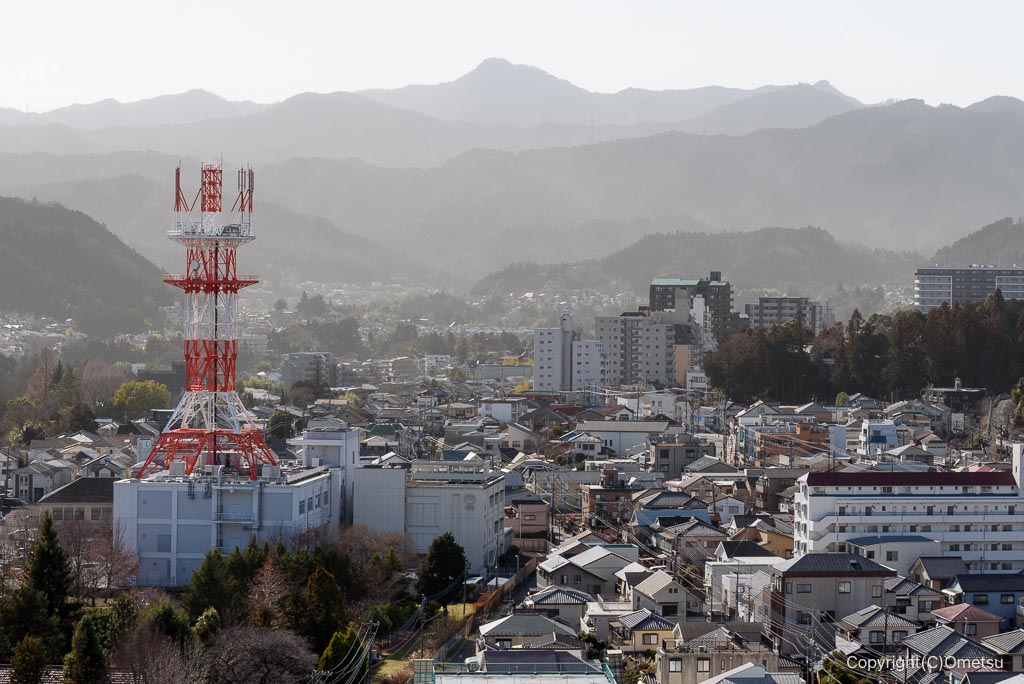 町から見ると、山が霞んでいます。これほどの花粉はかなり珍しいでしょう。