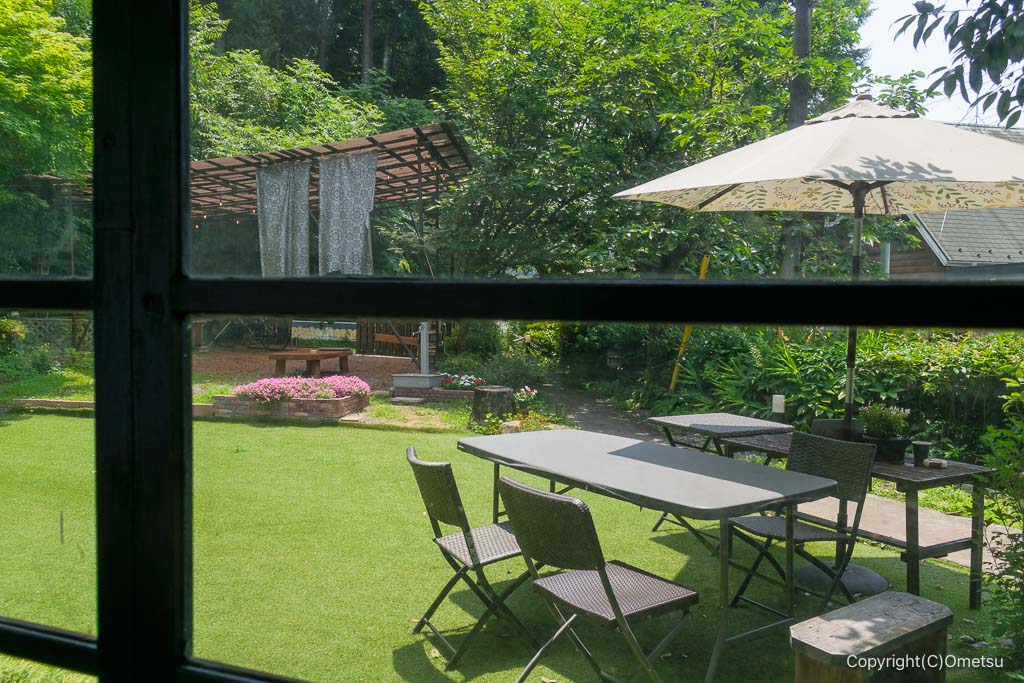 庭にはパラソル付きのテーブルもあります。