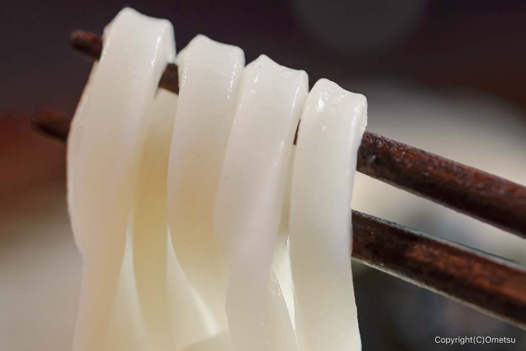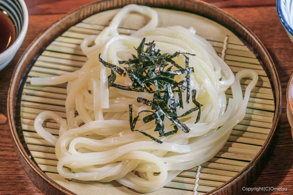 透明感あふれる、うどん。腰のあり、それでいてモチモチとした食感も楽しめます。