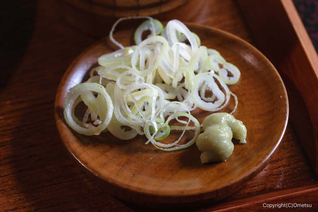 薬味はネギとワサビ。
