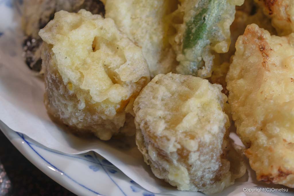 レンコン、オクラなどを始め、新鮮野菜の精進揚げも美味い!