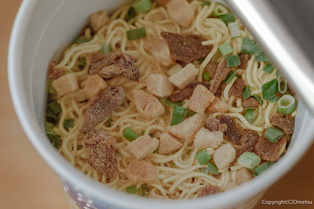 本家の麺は、やや柔らかめな繊細な麺。素麺にも近しい食感で、コシの強さのみをアピールする感じではありません。カップ麺で再現するとしたら、ノンフライより揚げ麺なのでしょう。