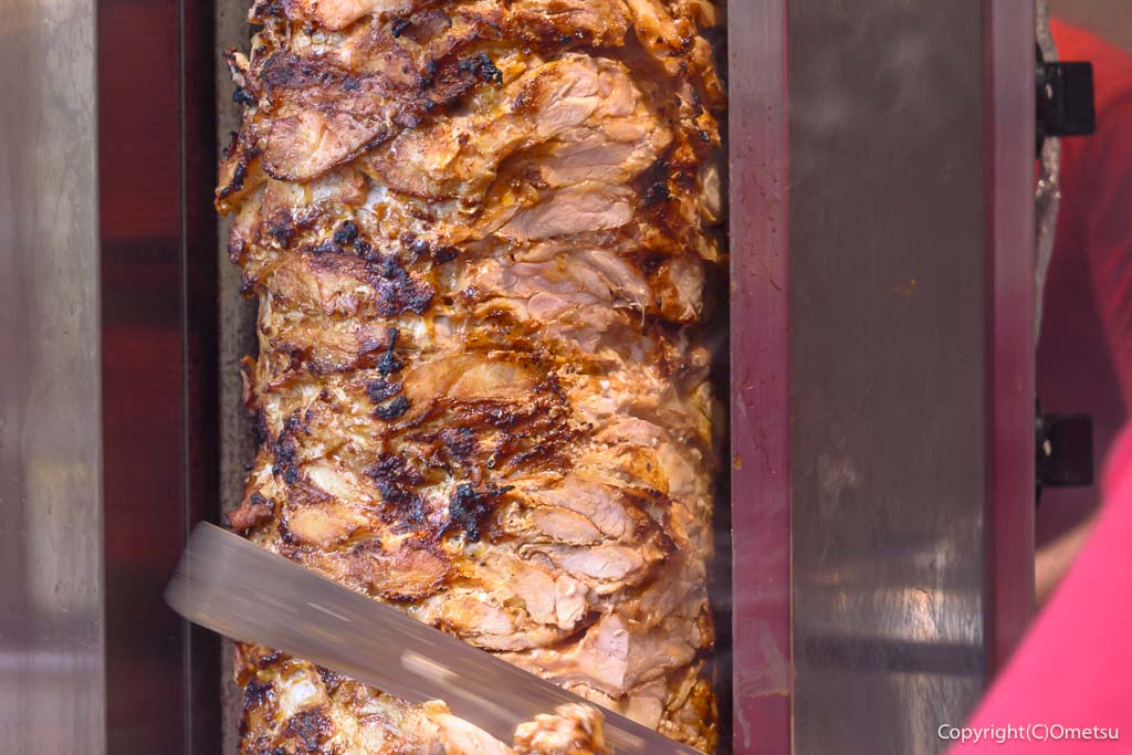 ドネルケバブの塊。注文が入ると。ローストした肉をそぎ落とします。