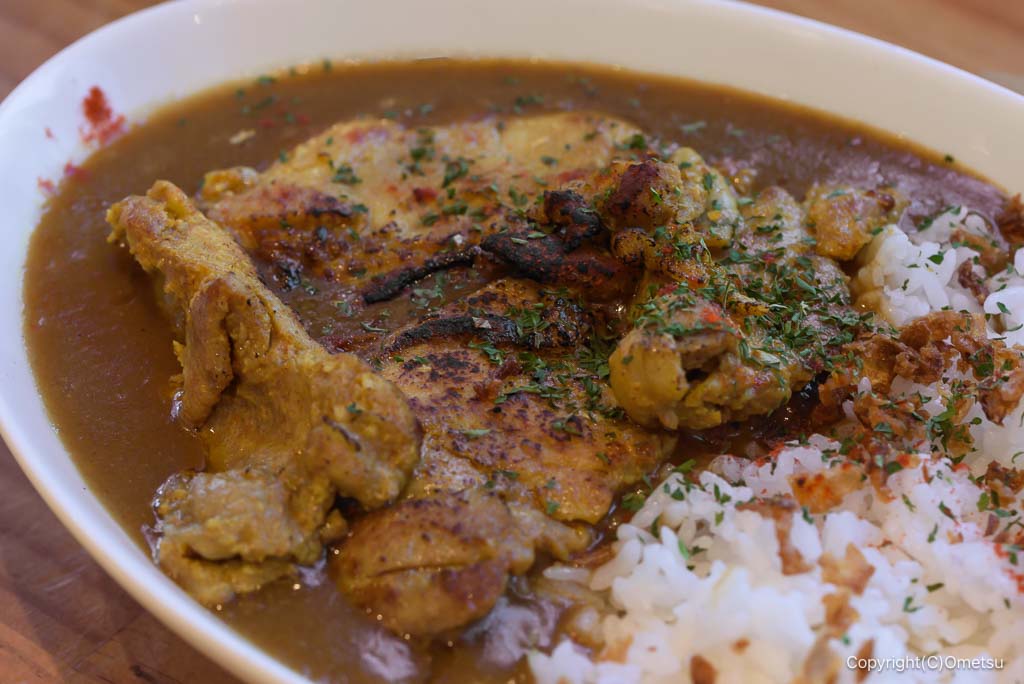 大きめの器にタップリのカレー。チキンの存在感が途方もない!