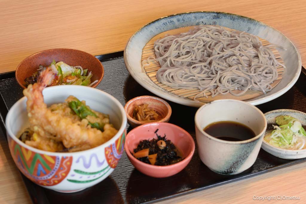 ランチの「小エビ天丼せいろそば」を注文。蕎麦、又はうどんの、かけ・もりが選べます。