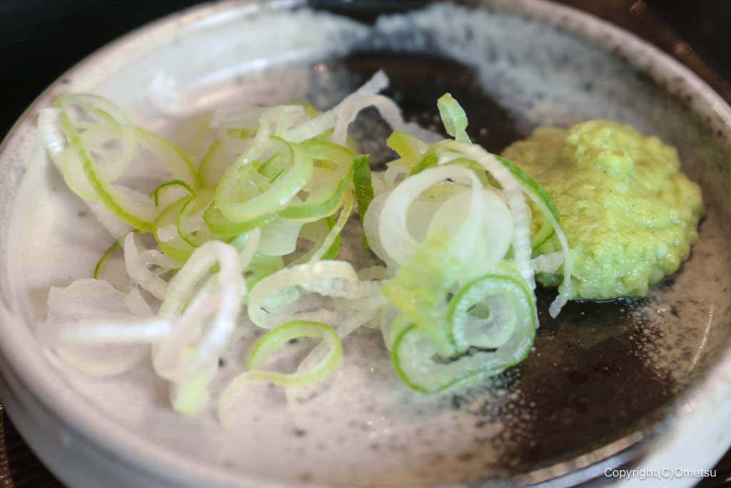 薬味はネギとワサビ。ワサビは本ワサビです!