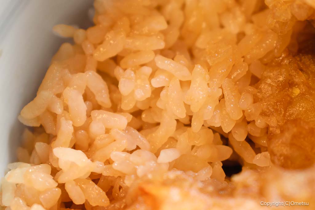 タレの染みたご飯。お蕎麦屋さんの天丼って、タレが美味いですよね。