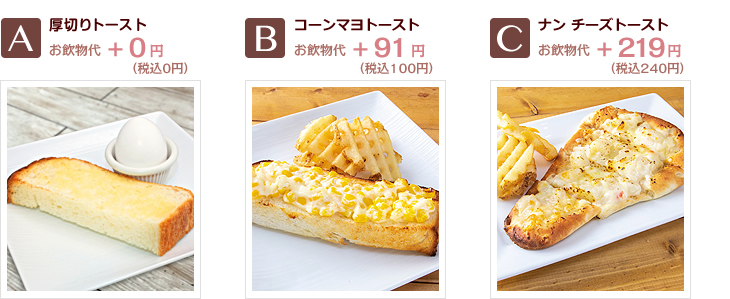 名古屋式のドリンク代のみで、トーストとゆで卵がサービスされるセットもありますが…