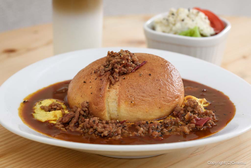 オムハヤシの真ん中に、自家製プレーンベーグルが鎮座!