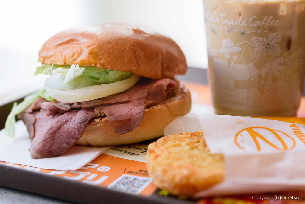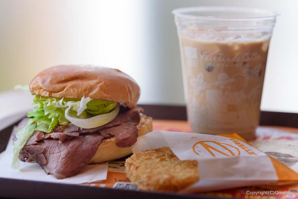 ローストビーフバーガー・ハッシュポテト・ドリンクセットをオーダー。